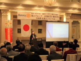 来賓の松本武洋和光市長、穂坂泰衆議院議員からご挨拶をいただきました。「国際交流について」をテーマに ワイズメンズ・クラブ国際協会の利根川恵子様による基調講演、志木RC・朝霞RC・朝霞キャロットRC・和光RCの4クラブによるパネルフォーラムも行われました(写真は松川様による基調講演)。