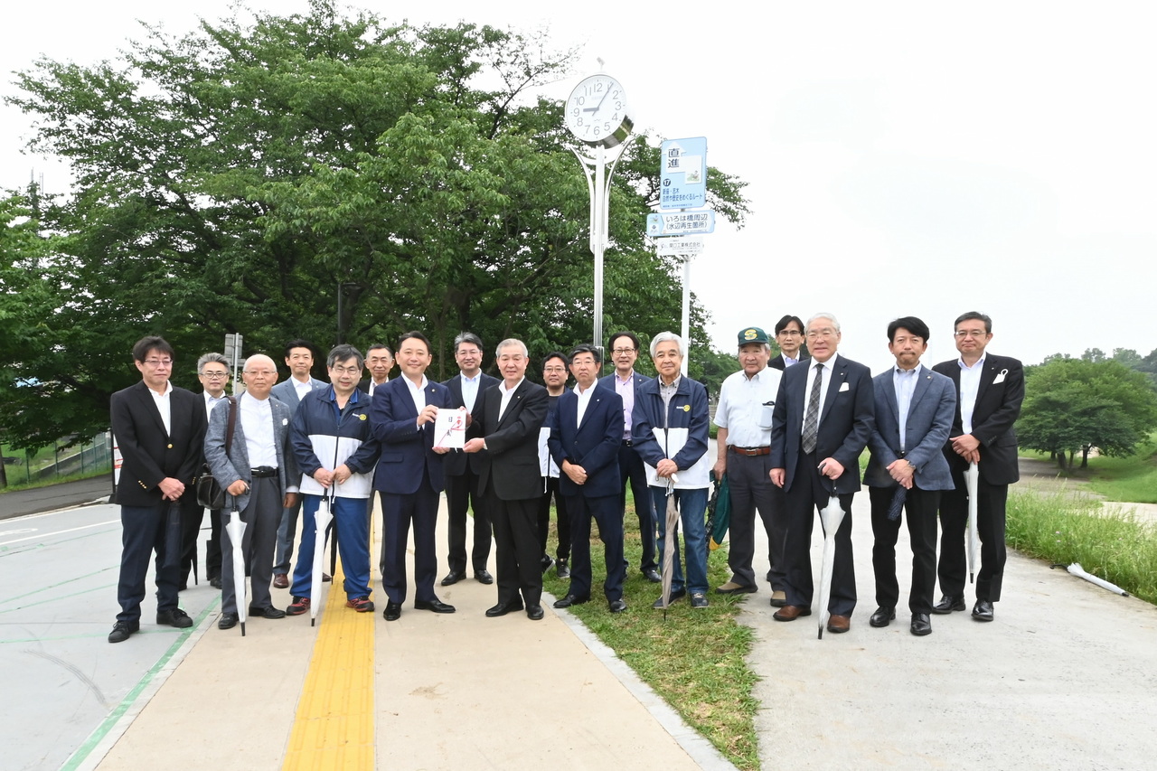 いろは親水公園のウォーターパーク近くにソーラー式時計塔を設置し、志木市へ贈呈しました。