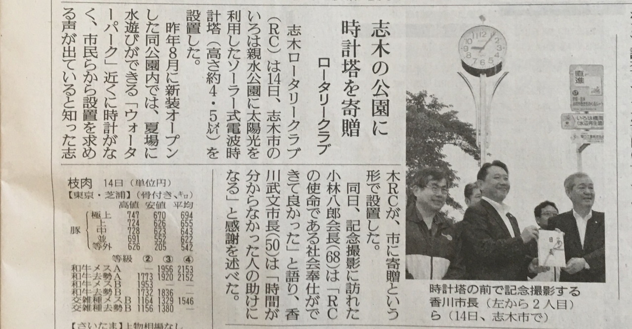 香川武文志木市長は、「遅くまで遊び過ぎて叱られてしまうお子様が少なくなり、公園で時間が分からなかった人々にも役にたちます」と感謝の言葉を述べていました。